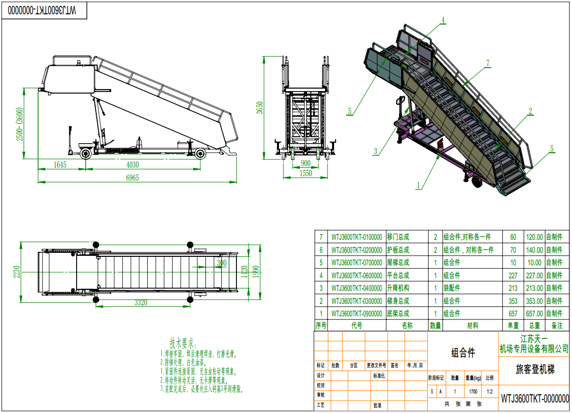 WTJ3600TKT is made of sliding assembly, plate assembly, ladder body, lifting mechanism, platform assembly and tail ladder assembly.
